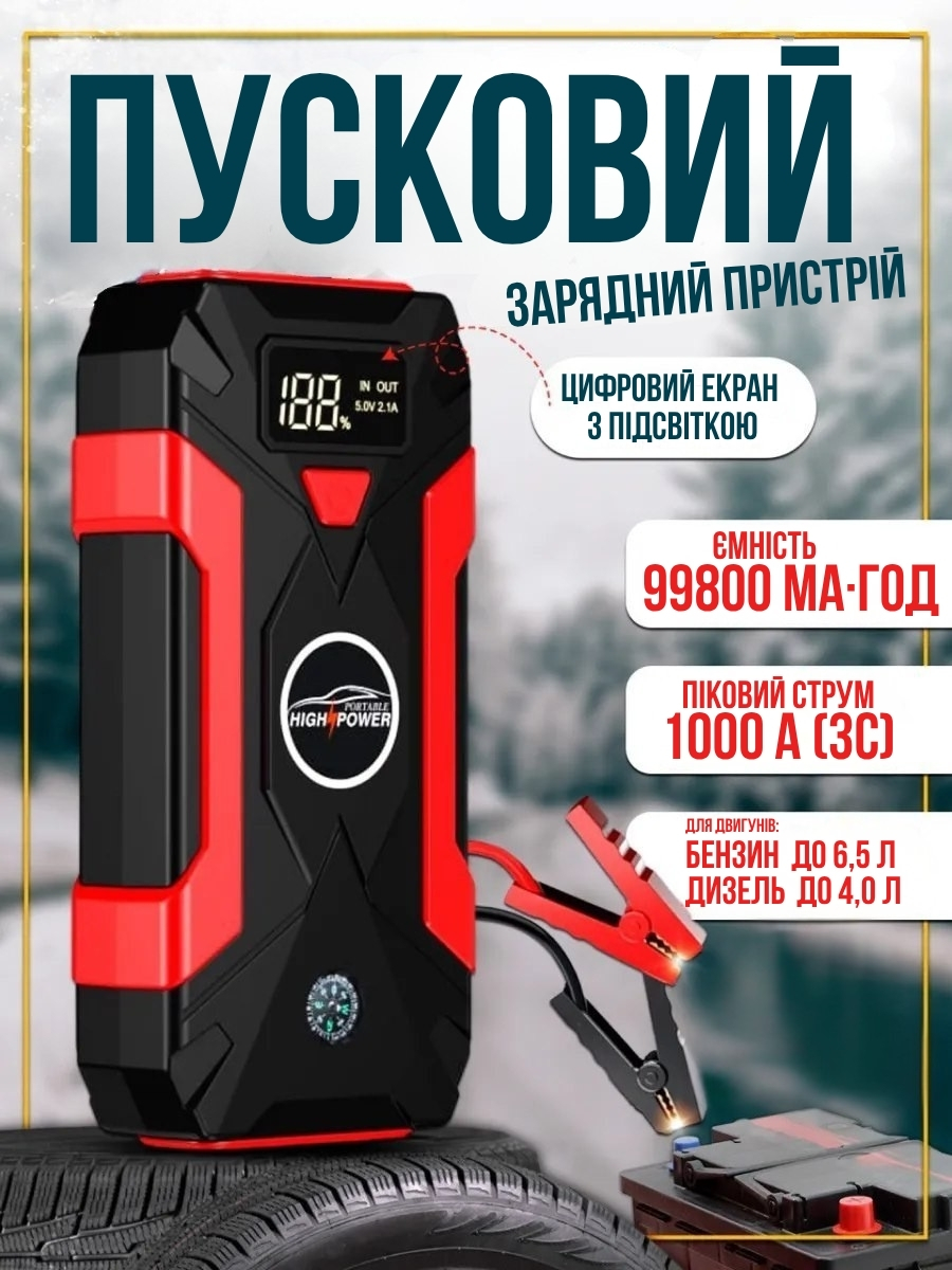 Автомобільний пусковий пристрій, power bank 2в1 - невід'ємна частина сучасного автомобіля, що дозволяє легко справлятися з проблемами розрядженого акумулятора. За допомогою цього зарядного пристрою ви зможете швидко і безпечно запустити акумулятор вашого автомобіля, мотоцикла або квадроцикла.